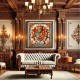 L?pez: Escudo con torre y le?n dorado, casco coronado y decoraciones en rojo y azul.